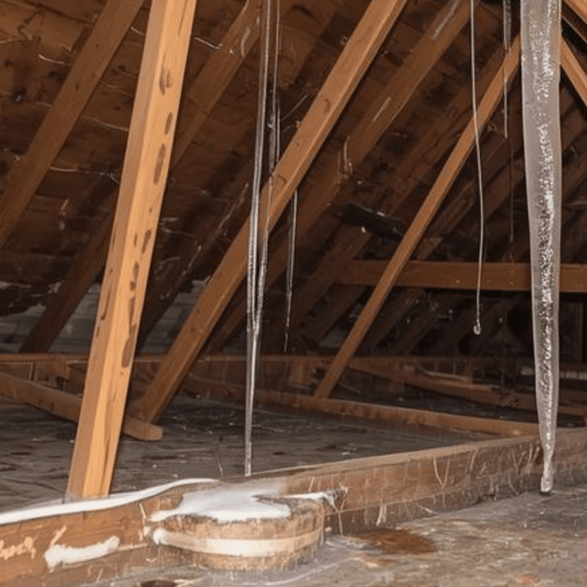 When snow melts, water runs to cold gutters and refreezes, creating a “dam.” This backs water up into your attic.